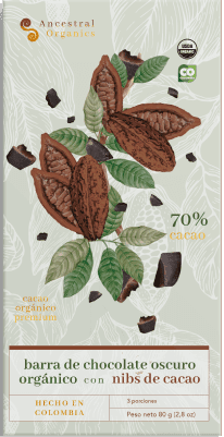 Barra de chocolate oscuro orgánico con nibs de cacao